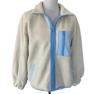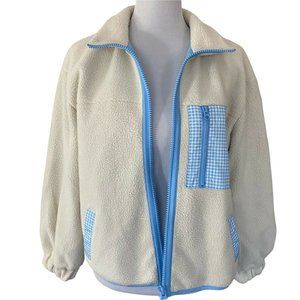 Sandy Liang for Target Cream Sherpa & Baby Blue Gingham Pocket Jacket