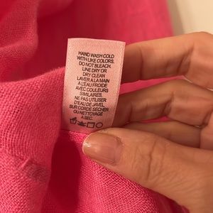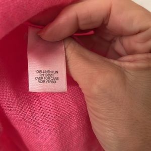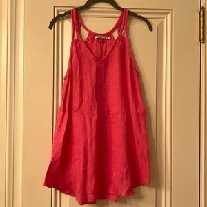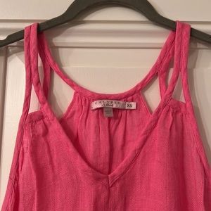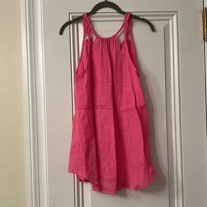 Calypso CS, pink linen tank, barely visible tiny white spot on bottom left front. Very cute as a swimsuit cover up or with Jean shorts. Nice on a hot summer day