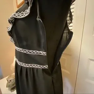 Beautiful neckline with white embroidered embellishment trim edge on ruffle.