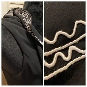 Black with white accent embroidered trim.