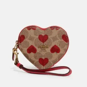 Coach Heart Coin Case In Signature Canvas With Red Print Love Purse Wristlet Bag