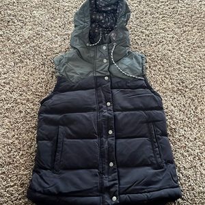 Patagonia hooded bivy down vest Womens Small grey/black lined super cute EUC