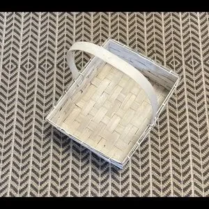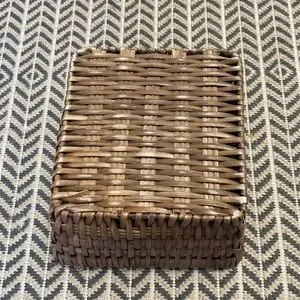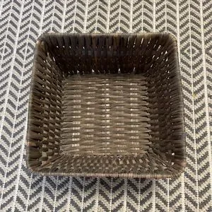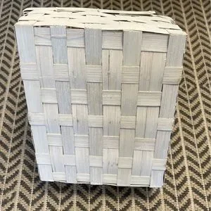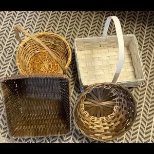Lot of 4 wicker baskets in various shapes and sizes. 2 are round in shape, 1 is square & the other is rectangular. 3 of the baskets are brown or tan in color and the 4th is painted white. Measurements are as follows: the white basket is 10 inches long, 8.5 inches wide & 3.75 inches deep, both of the round baskets are approximately 9 inches round & 4 inches deep and the darker brown basket is 9 inches square & 5.25 inches deep. All in great condition and ready for decorative use.