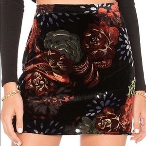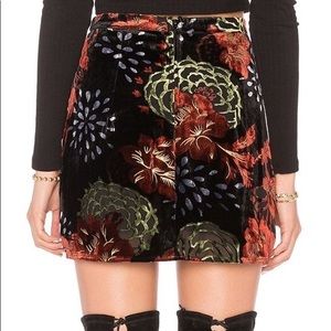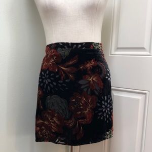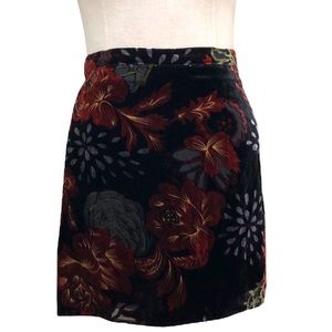 SOLD Band of Gypsies Velvet Floral Mini Skirt Size Large Black Burnt Sienna