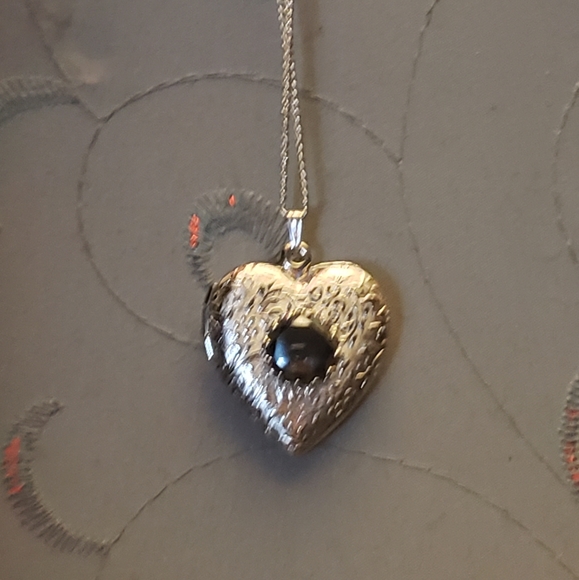 Exentuated by a 🖤 Black Sapphire and Silver Embossing on outer Locket. front and back!