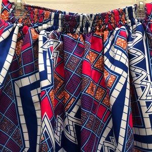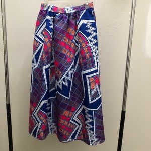 Beautiful maxi skirt with bright pattern throughout. This has an elastic waist for a comfortable fit all day. This skirt also has pockets!