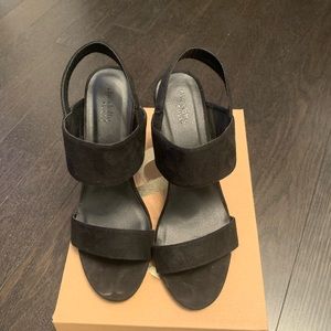 Black Faux Suede Block Heel Sandal