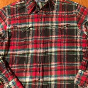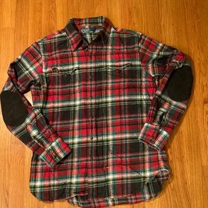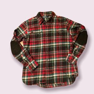 Polo Ralph Lauren Western Patch Suede Elbow Snap Plaid Flannel Shirt