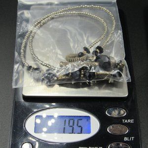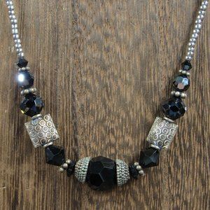 16" Silver Tone Rustic Hefty Black Material Necklace Vintage Costume Jewelry Beautiful Elegant Brilliant Everyday Minimalist