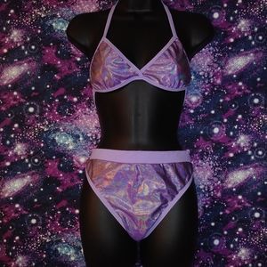 iHeartRaves / Rolita Couture Purple Holographic Iridescent Top & Bottoms