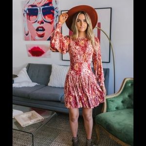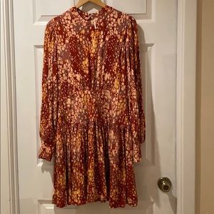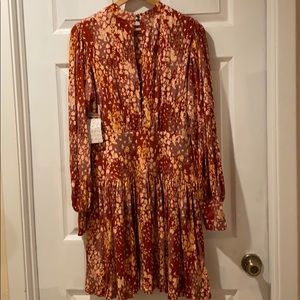 Free People Heartsbeat Mini Dress in Red ditsy floral rust combo size L NWT New
