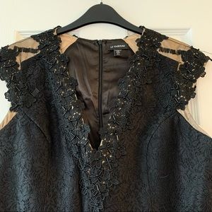 Le Chateau Black Floral Lace Beaded Cocktail Dress L