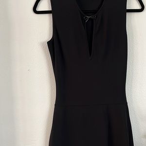 Classic black dress with leather bow detail and ruching in the back. Excellent condition! Perfect for any occasion weddings, formal events, black tie etc. made in Italy.
