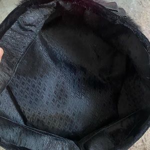 Vintage Black fur hat with bow & satin lining. Classy and cute!