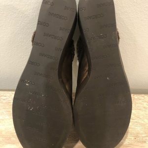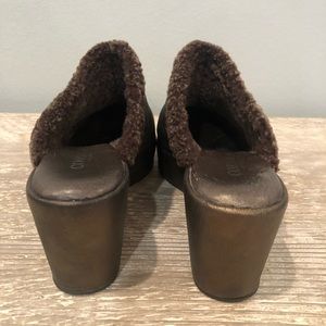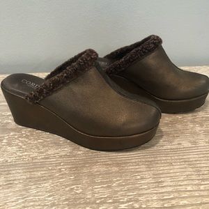 Cordani 3” wedge clog. Beautiful bronze color. Fleece trim.
