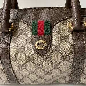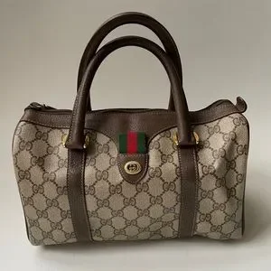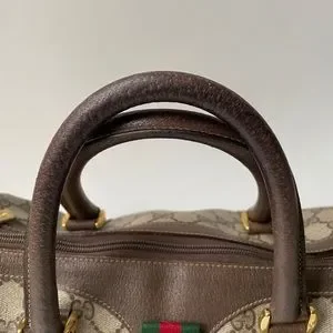 Authentic Vintage Gucci Boston Brown GG Coated Canvas Satchel