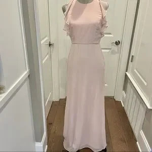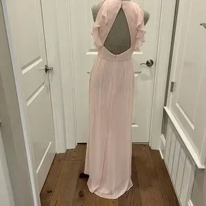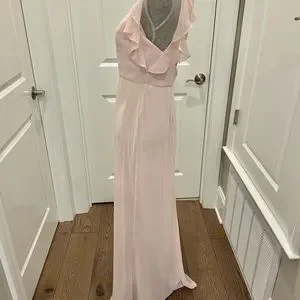DESSY BRIDAL COLLECTION long blush pink bridesmaids dress, sleeveless with ruffled accents. Size 4R. Open back, with back zipper. Measures approximately 57” top to bottom. Fully lined. Excellent condition, free of rips, stains, and tears. Smoke free home. All offers considered.