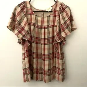 Maeve by Anthropologie Multi-Color Plaid Flutter Sleeve Top