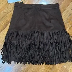 Dark brown suede fringe skirt