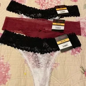 Set of 3 Lace Thongs. 2 of them are white and black and one red. New with tags.