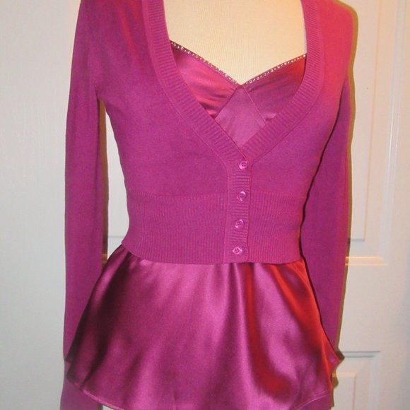 Express Vintage pink Burgundy Satin Camisole (sm) w. Matching Arm Warmer Shrug (sz M)