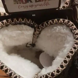 Muk Luk Slipper Bootiies with extremely soft sherpa interior. Hard soles can be used indoors or outdoors. Very lovely print and colors. These slippers are so very soft, warm, comfortable, and amazing! New with tags.