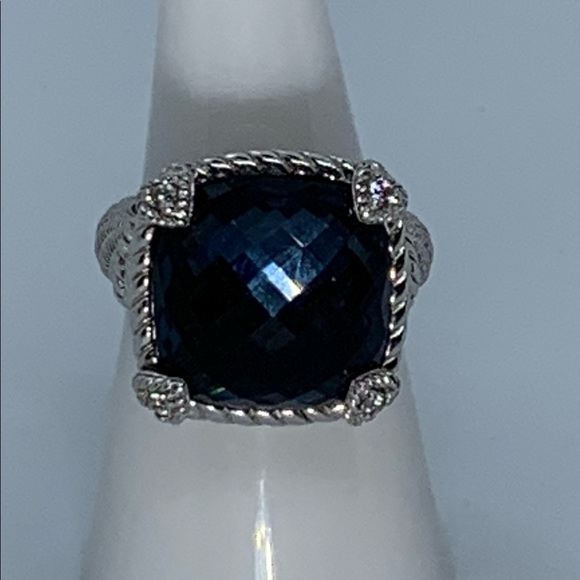 JUDITH RIPKA STERLING 925 BLUE HEMATITE DOUBLET RING W/ DIAMONIQUE RING