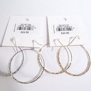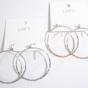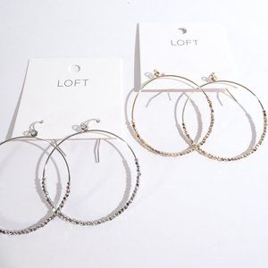 Ann Taylo LOFT Shimmer Hoop Drop Earrings NWT $24.50 Set of 2 silver and Gold