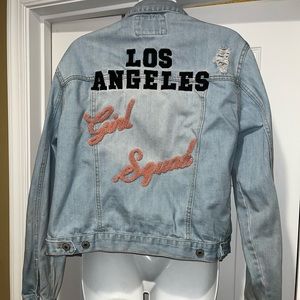 Forever 21 LA Girls Squad Distressed Denim Jacket