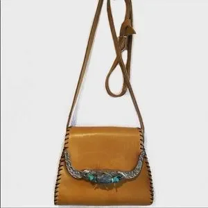 Vintage Glen Miller leather bag with adjustable strap and silver hardware and turquoise stones