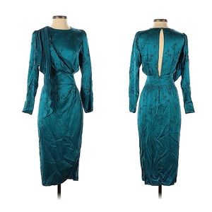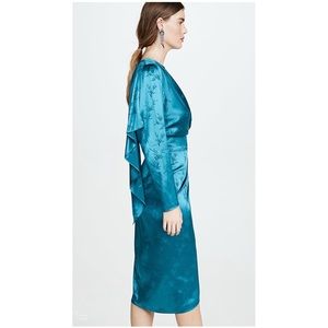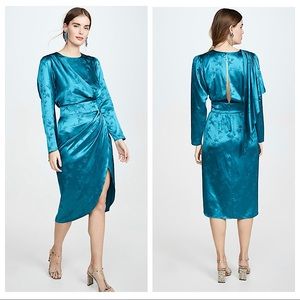 Tags: Revolve, Ronny Kobo Collection, silk, dress, long sleeves, silk dress, silky dress, 3/4 sleeves, blue, jade, sexy