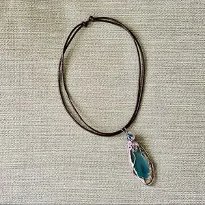 Slip-knot leather cord extends from 7” to 14”
