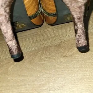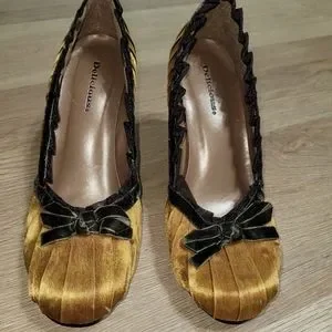 Drk brown ribbon and bow, fabric on 4 in heel Excellent condition