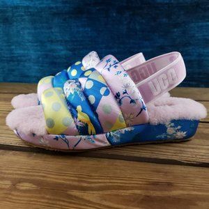 UGG Puff Yeah Floral Polka Dot Slide Sling Back Womens Size 8 Lamb Fur Silk Pink