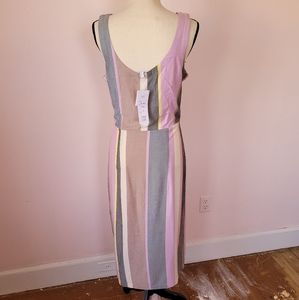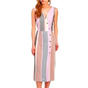 Patrons of Peace Striped Pink, Gray, Tan & Cream Sleeveless Midi Dress NEW Sz M