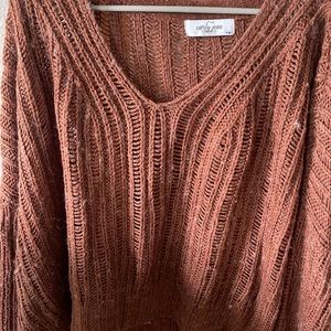 CJLA sweater, rust colored, size S/M. Loved this sweater, good to wear over a white tank or bralette with a long skirt or jeans. Does have piling because of the material but didn’t bother me. Only selling to make room for different clothing!