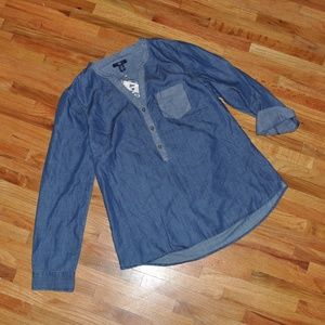 GAP Blue Mixed Chambray Split-Neck Popover Tunic Top sz M NEW Women's Blouse