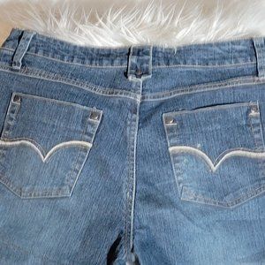 Mixit Dark Wash Cropped Jeggings. Embroidered flowers! Size 8 Petite