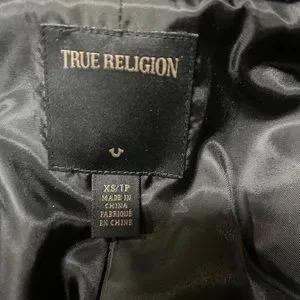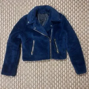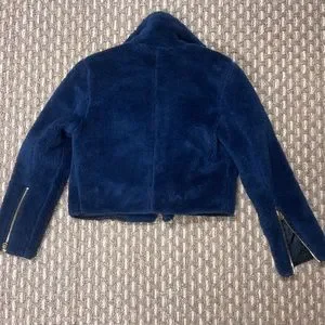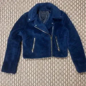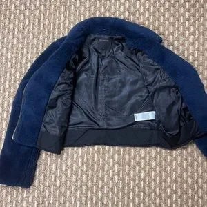 True Religion Faux Fur Moto Jacket S Dark Navy Blue Gold Women’s Sz XS NWOT