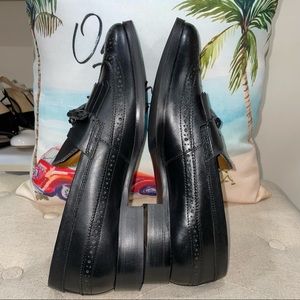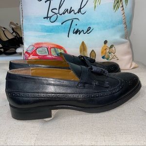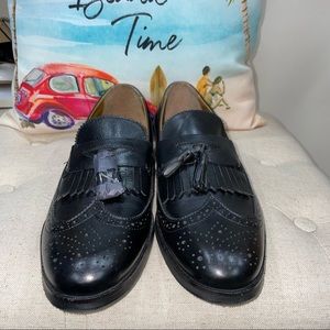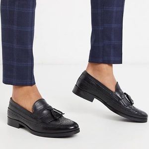 ASOS NWOB! Fringe/Tassel Dress Loafers In Black Polished Leather Shoes With Brogue Detail Size 10