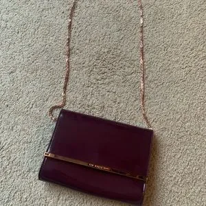 Ted baker patent leather burgundy clutch/ Crossbody. Used minimally, in excellent condition. Rose gold detachable strap