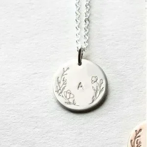 Floral Letter O Initial Dainty Silver/Gold Disc Botanical Customized Necklace