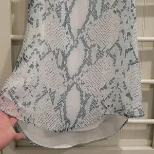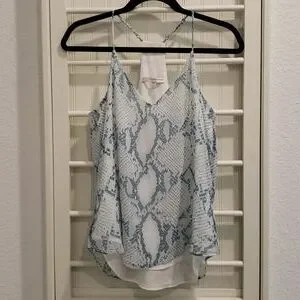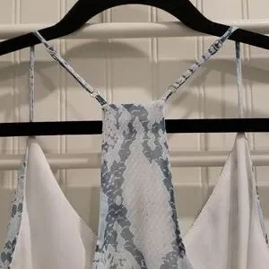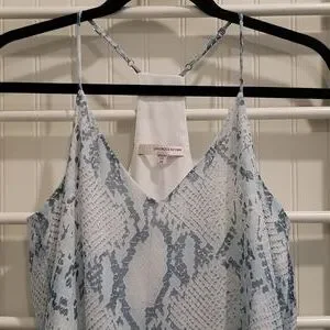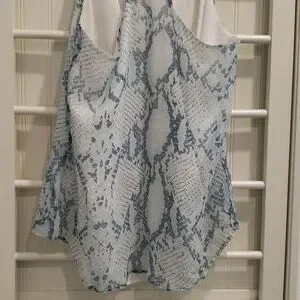 Lavender Brown Silk Tank in a blue snakeskin pattern. 100% silk outer shell, fully lined. Racerback style with adjustable straps. Excellent condition. Size medium.