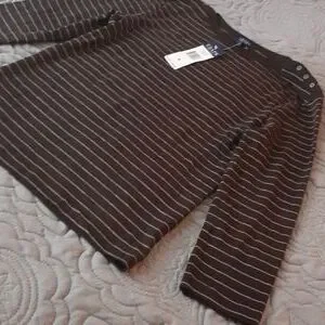 Beautiful chocolate brown with tan stripes. super cute button detail on shoulders. brand new with tag!!!! An everyday favorite any time you want to be comfortable and look good. Soo flattering!