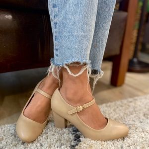 Nude Retro Mary Jane Pointed Toe Pumps Heels