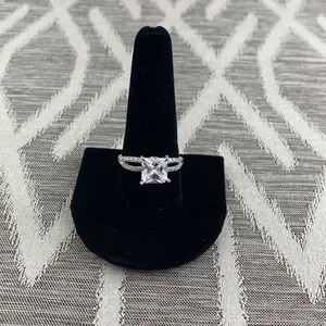 Silver Tone Solitary Stone ring with tiny stones on Band.