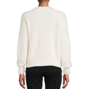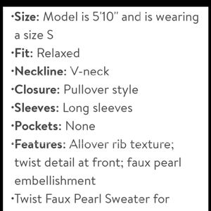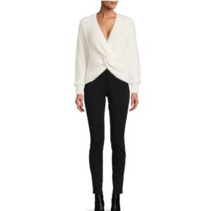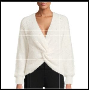 New Women's Ivory White Twist Front Sweater with Faux Pearl