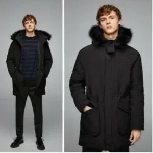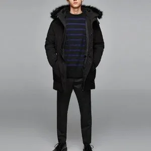 Zara MAN Long Quilted Coat With Faux Fur Hood
