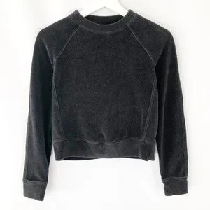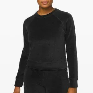 Lululemon Every Moment Crew Heathered Black Velvet Velour Cropped Sweatshirt