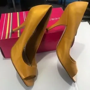 BCBGirls ARIEL Yellow Opalescent Peep Toe Heels
